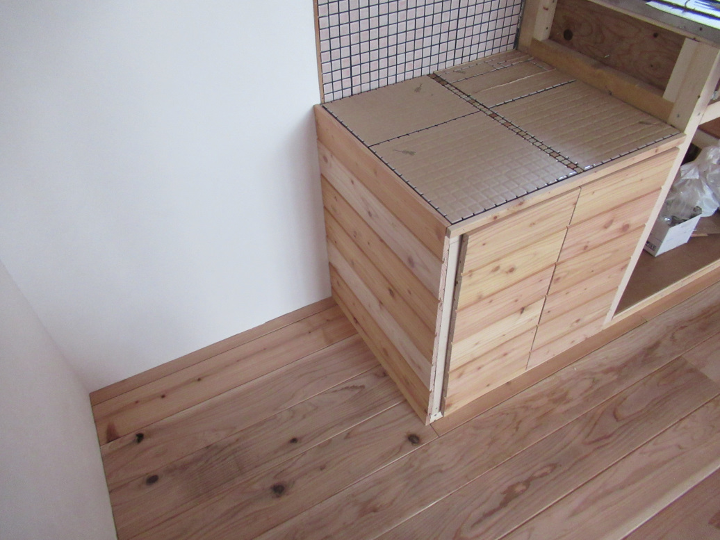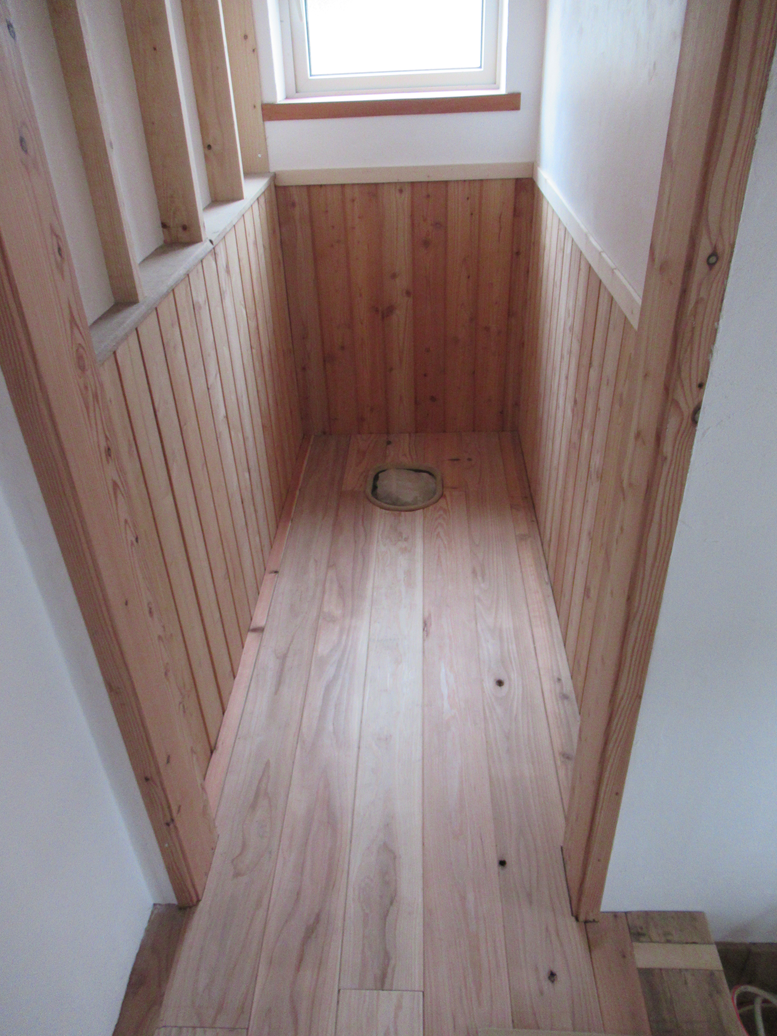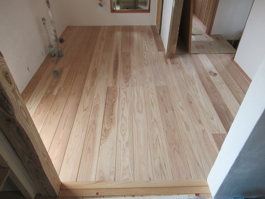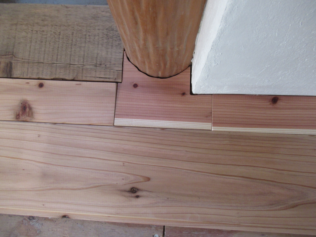 ここは素足で歩くことが多いだろうし、節のない材料を優先して使いました。