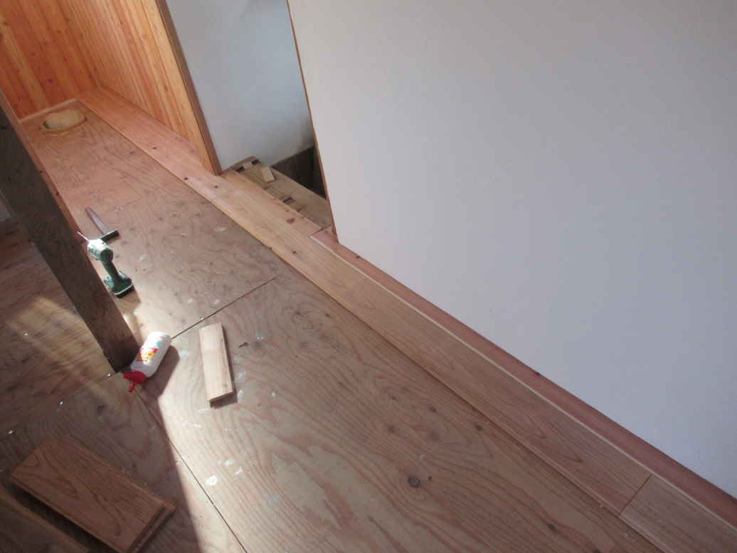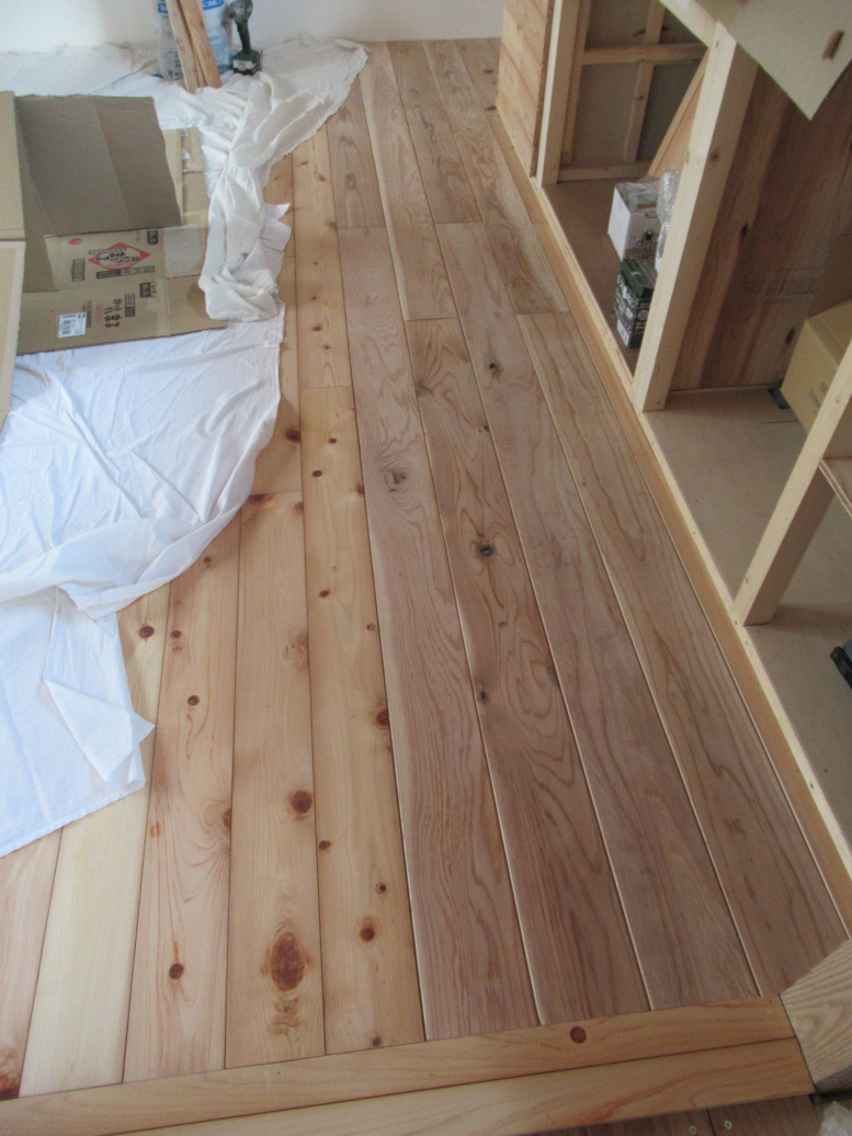 張った箇所から養生しているので、残念ながら床の全体写真はなし。