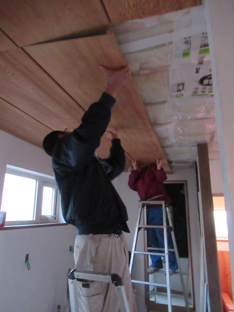 先月から天井を張り始めたけれど、こればっかりは2人いないとできないので、