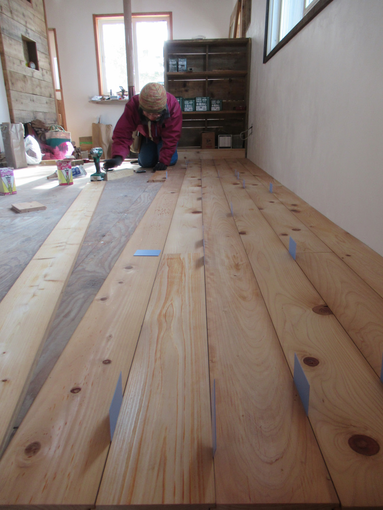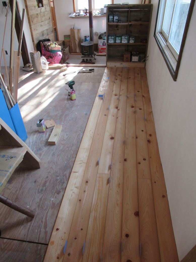 今週は、今ある床材を半分くらいは張れたかな。