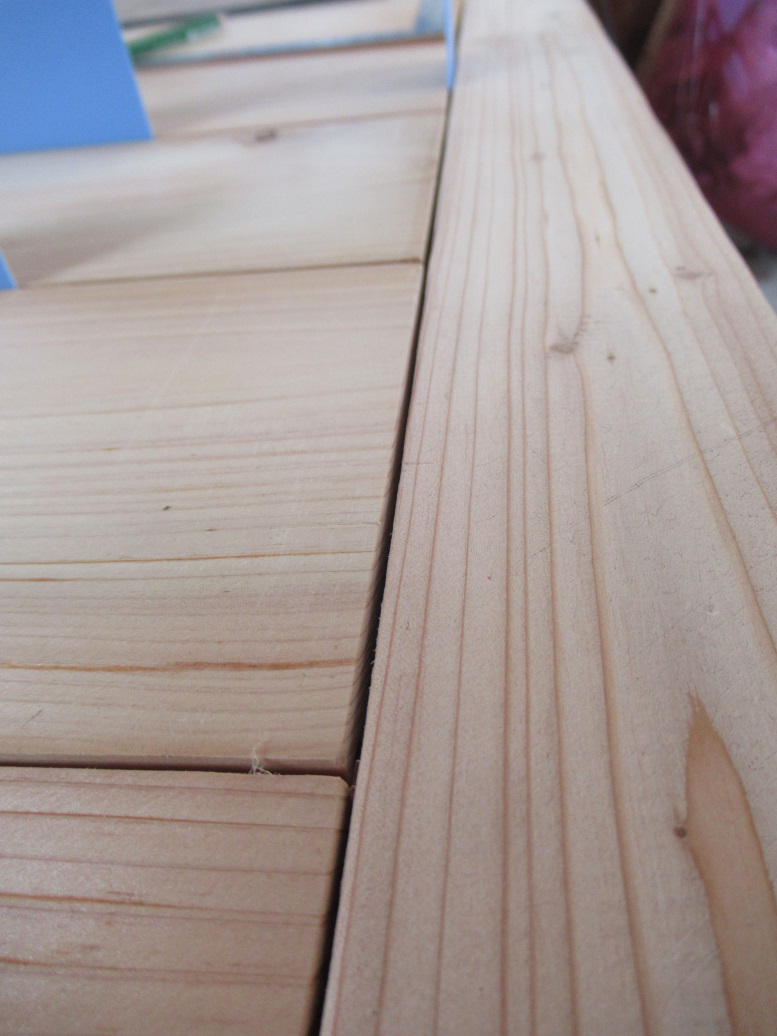 板は収縮するので、1㎜ずつ開けて張る。