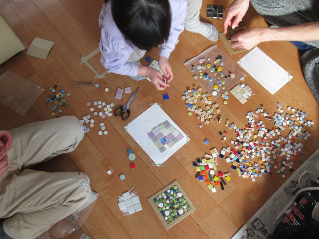 10㎝角のサイズだけ決めて、各自自由にタイルを並べた。