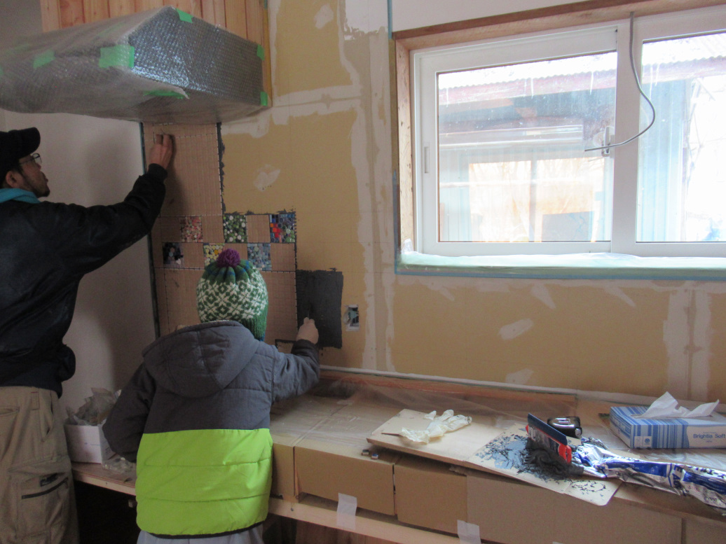 最後、右端に空いた隙間に小さなタイルを詰めた。
